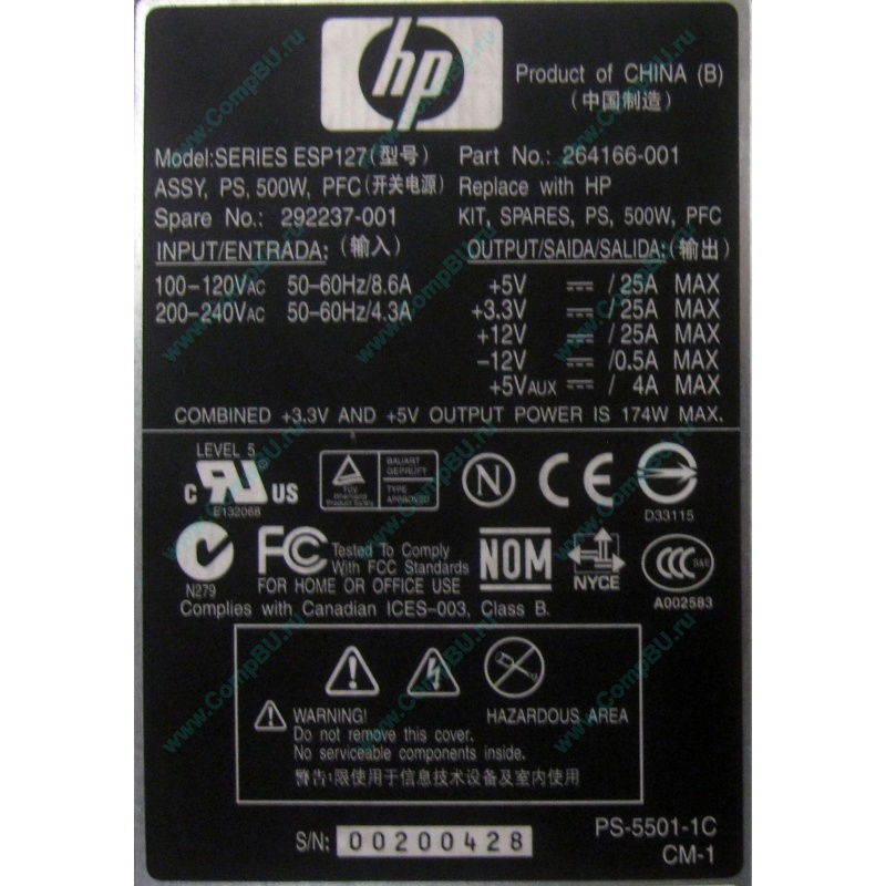 Серверный блок питания 500W HP ESP127 PS-5501-1C (p/n 264166-001) для серверов HP ML350G3.