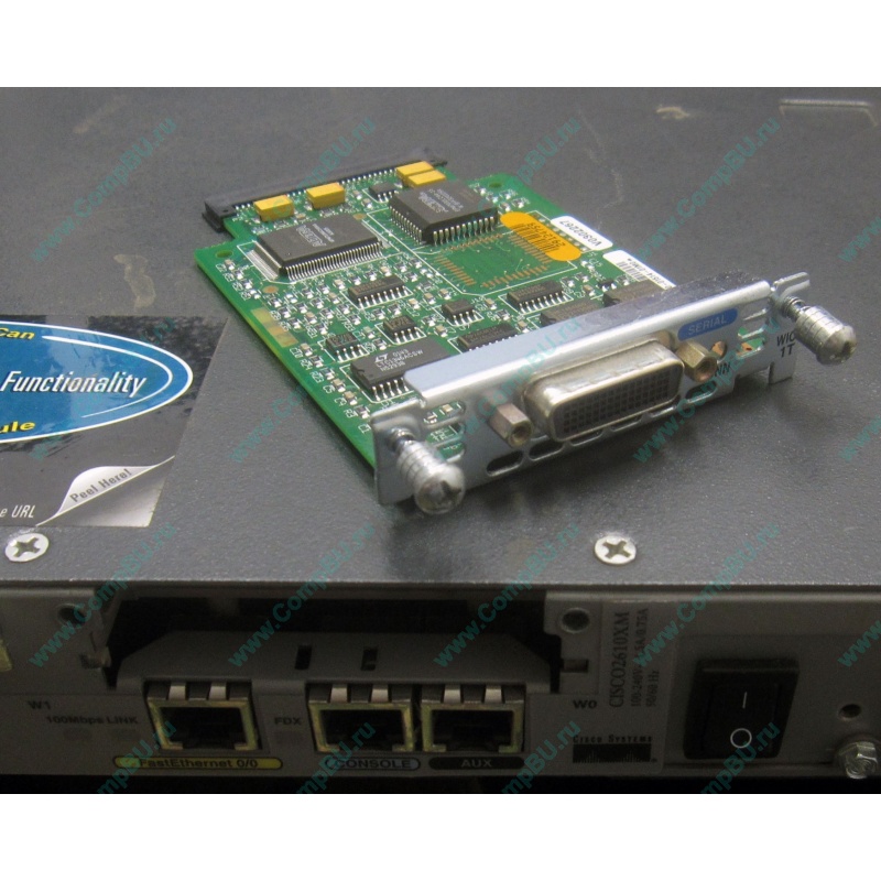 Дополнительно установлен модуль Cisco Systems 800-01514-01 M0 WIC - 1T Serial Interface Card Module.