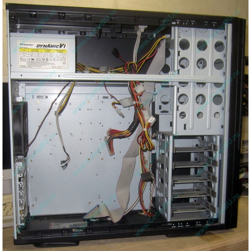 Большой корпус с дверцей. Блок питания 400 W. В бонус DVDRW IDE (установлен в корпус).