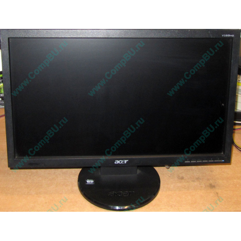 Широкоформатный Б/У монитор 18.5" TFT Acer V193HQ Db 1366x768 (16:9), цвет черный. Состояние хорошее, но есть тонкая царапина ~2 см возле рамки в правой части.