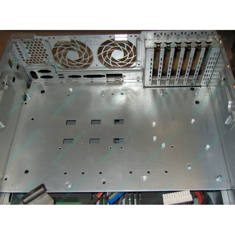 Белые пластмассовые изолирующие стойки с защелками под материнскую плату в сервере Hewlett Packard Proliant ML370G4.